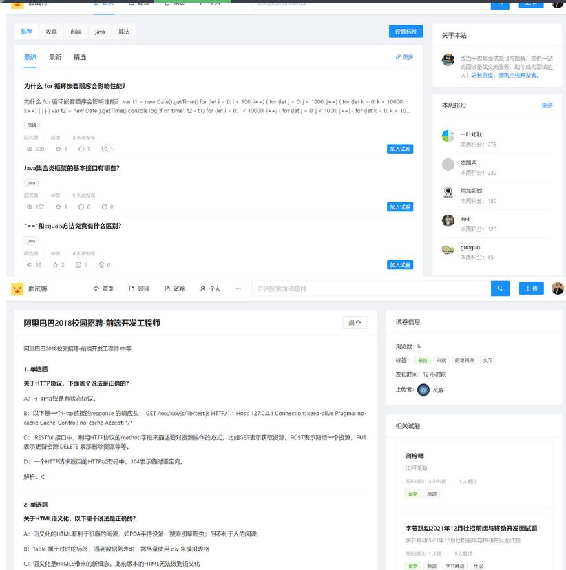 面试鸭一个干净的面试刷题网站!专业面试刷题网站,助你成为面试达人!支持自由组卷、在线刷题、校招社招斩获大厂offer,求职必备!