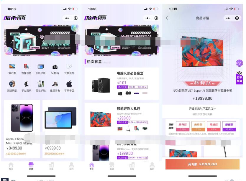 HashMart(哈希玛特)是首款开源的面向生产的高性能、易开发的盲盒系统。它包含:首页看板、商品管理、订单管理、盲盒管理、系统管理、会员管理、权限管理、记录管理,并且拥有完善的搭建使用手册和接口文档。是帮助您快速落地盲盒商城系统的不二之选。